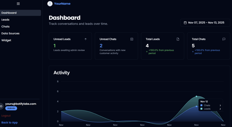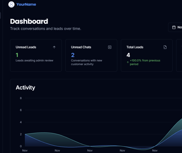 Admin Command Center: Request demo access to test the dashboard, edit AI persona, and watch live leads appear.